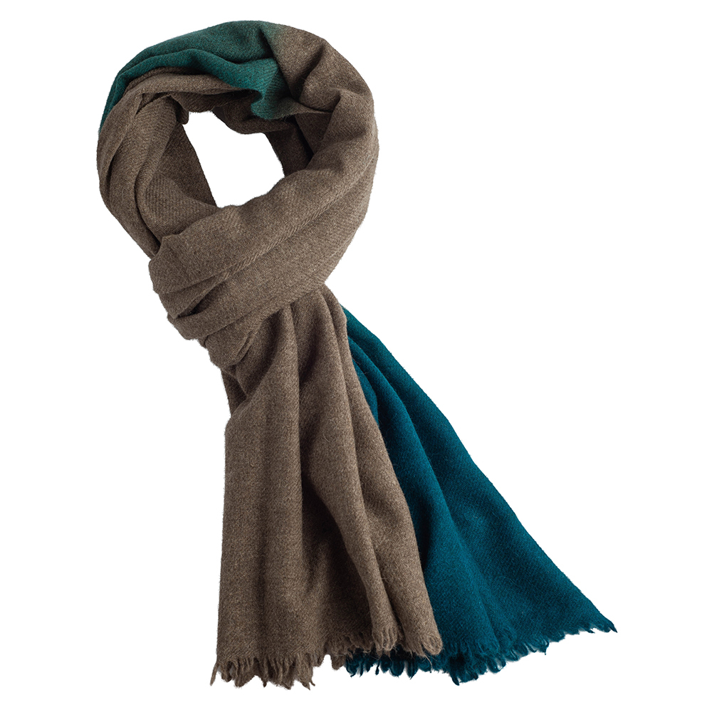 Elevate your ensemble with the YAK SHADED STOLE in GREY-BROWN PETROL BLUE, a testament to exquisite craftsmanship and contemporary style. This accessory combines the warmth of grey-brown with the depth of petrol blue, creating a versatile piece that complements any outfit.